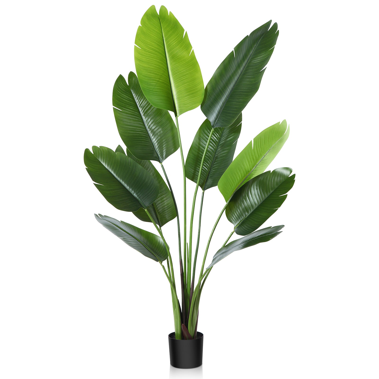 CROSOFMI Artificial Bird of Paradise Plant 5 Feet Fake Tropical Palm Tree with 10 Leaves,Perfect Faux Plants in Pot for Indoor Outdoor House Home Office Garden Modern Decoration Housewarming Gift