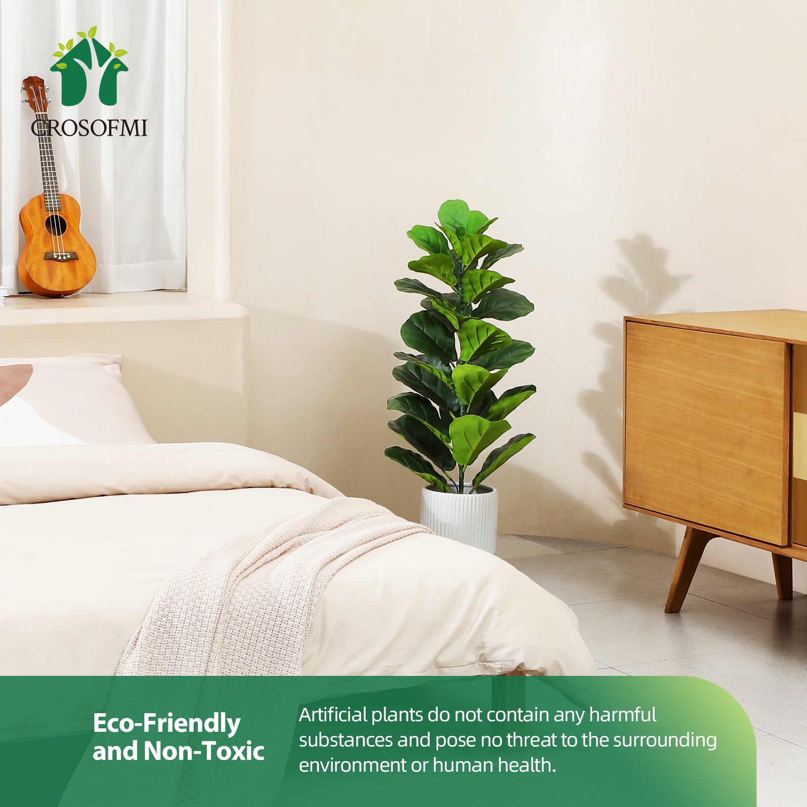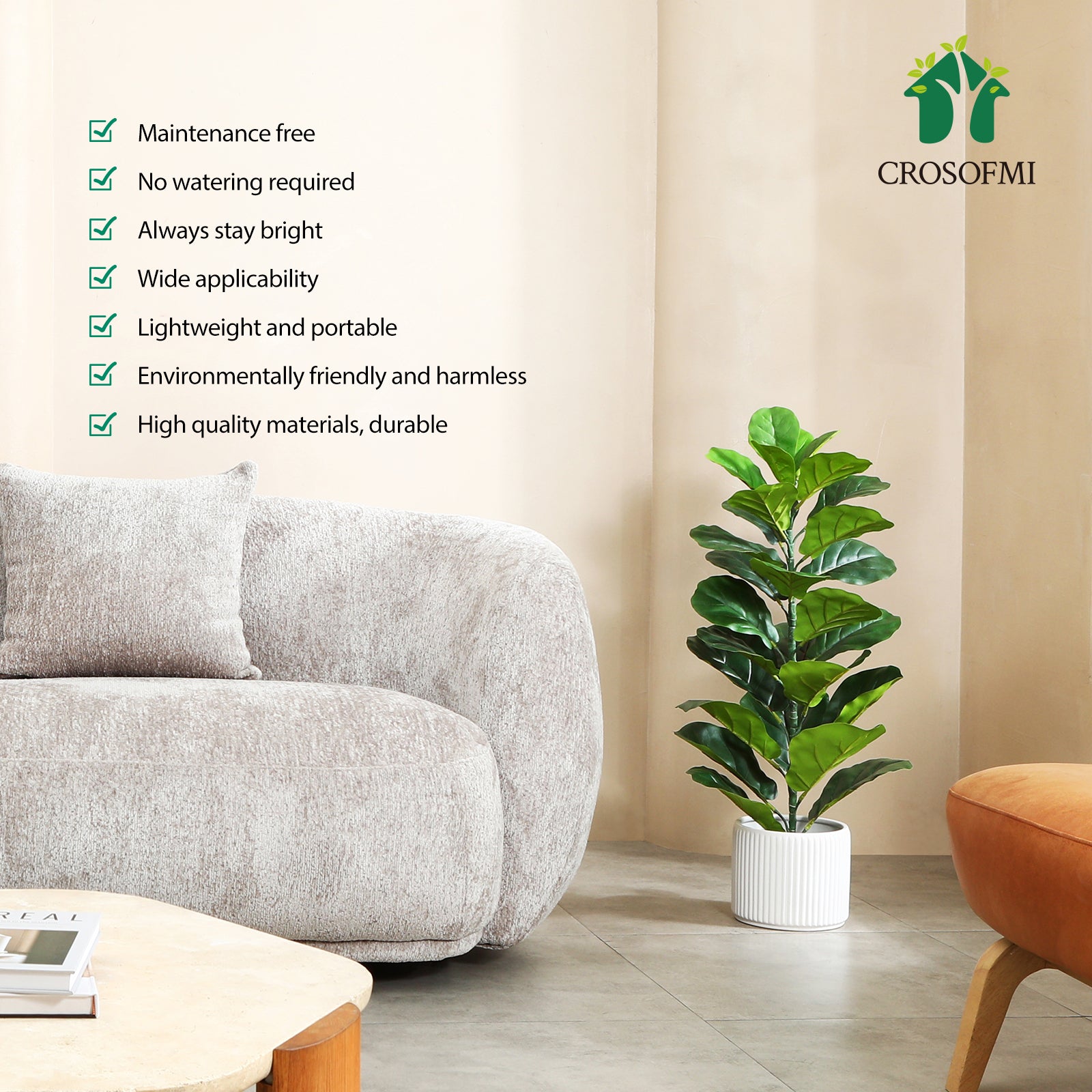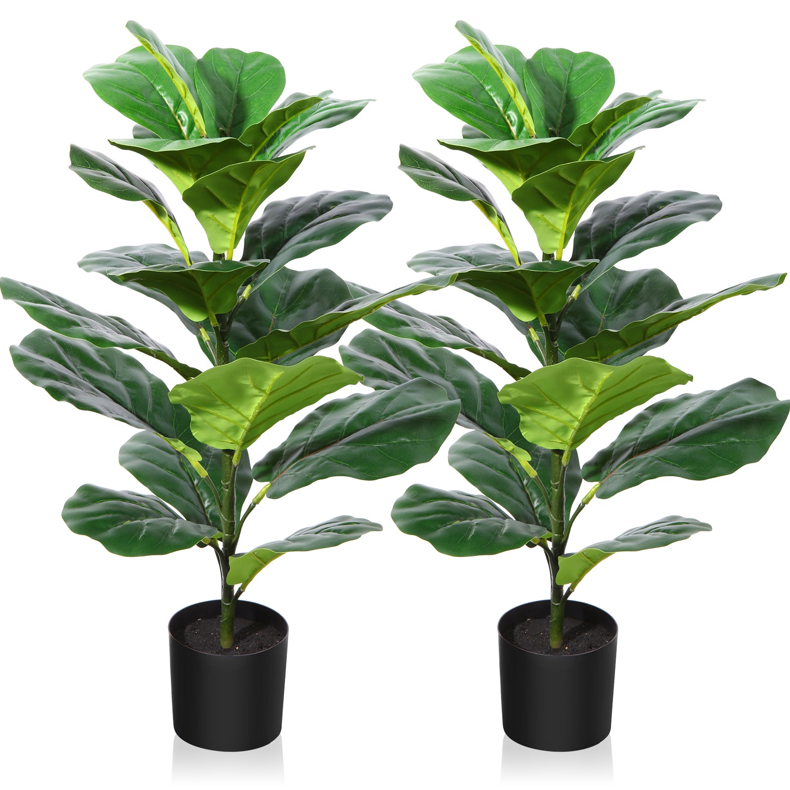 CROSOFMI Artificial Fiddle Leaf Fig Tree 35 Inch Fake Ficus Lyrata Plant with 28 Leaves Faux Plants in Pot for Indoor Outdoor House Home Office Garden Modern Decoration Perfect Housewarming Gift,2pcs