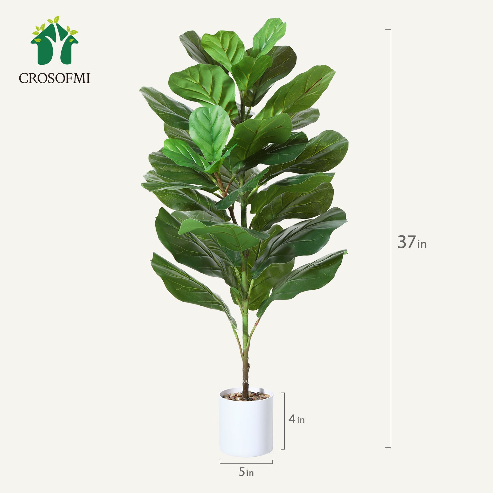 CROSOFMI Artificial Mini Fiddle Leaf Fig Tree 37 Inch Fake Ficus Lyrata Plant with 15 Leaves Faux Plants in White Pot for Indoor House Home Office Modern Decoration Perfect Housewarming Gift