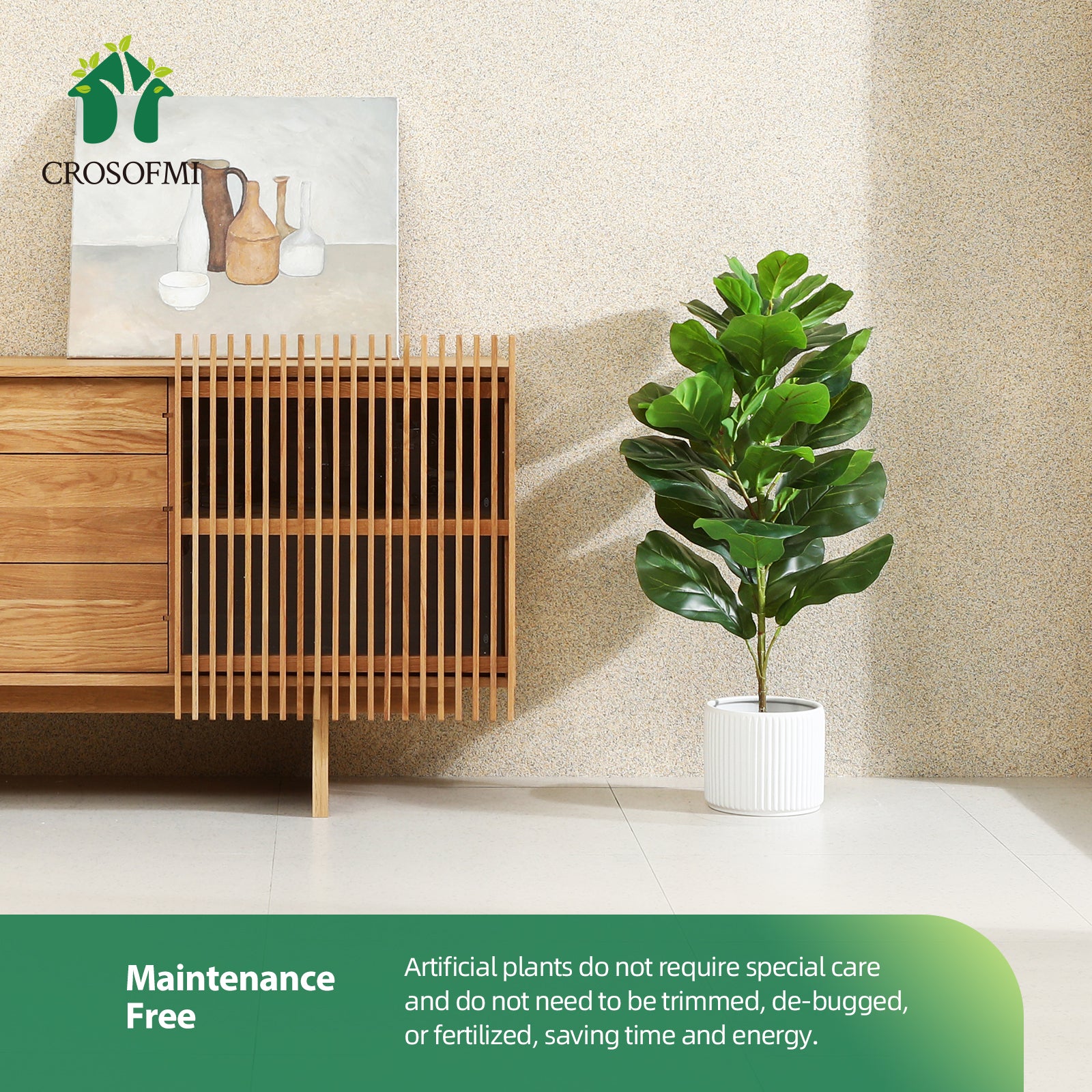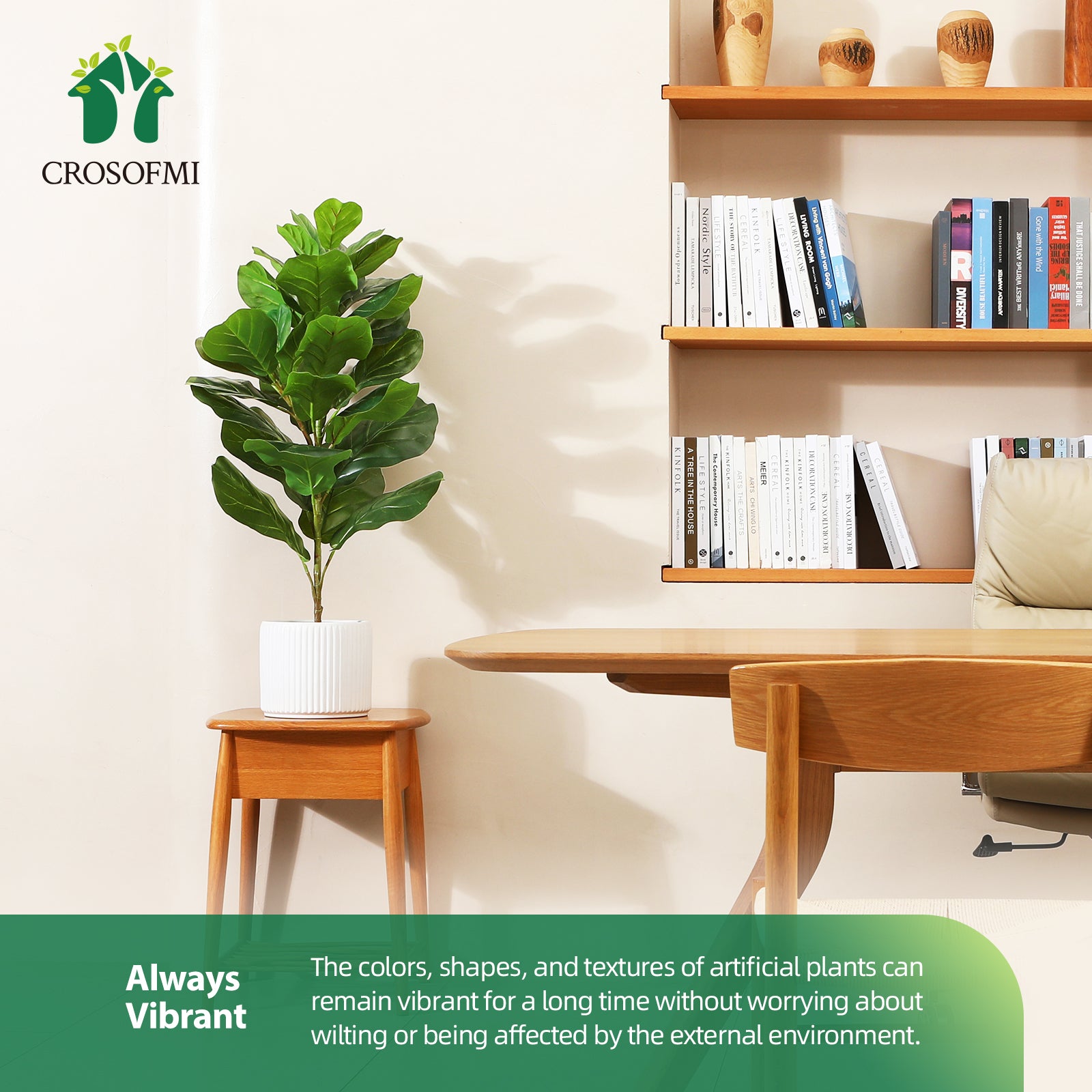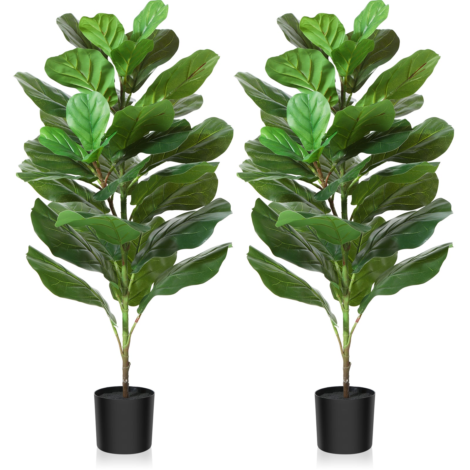 CROSOFMI Artificial Mini Fiddle Leaf Fig Tree 37 Inch Fake Ficus Lyrata Plant with 32 Leaves Faux Plants in Pot for Indoor House Home Office Modern Decoration Perfect Housewarming Gift,2pcs