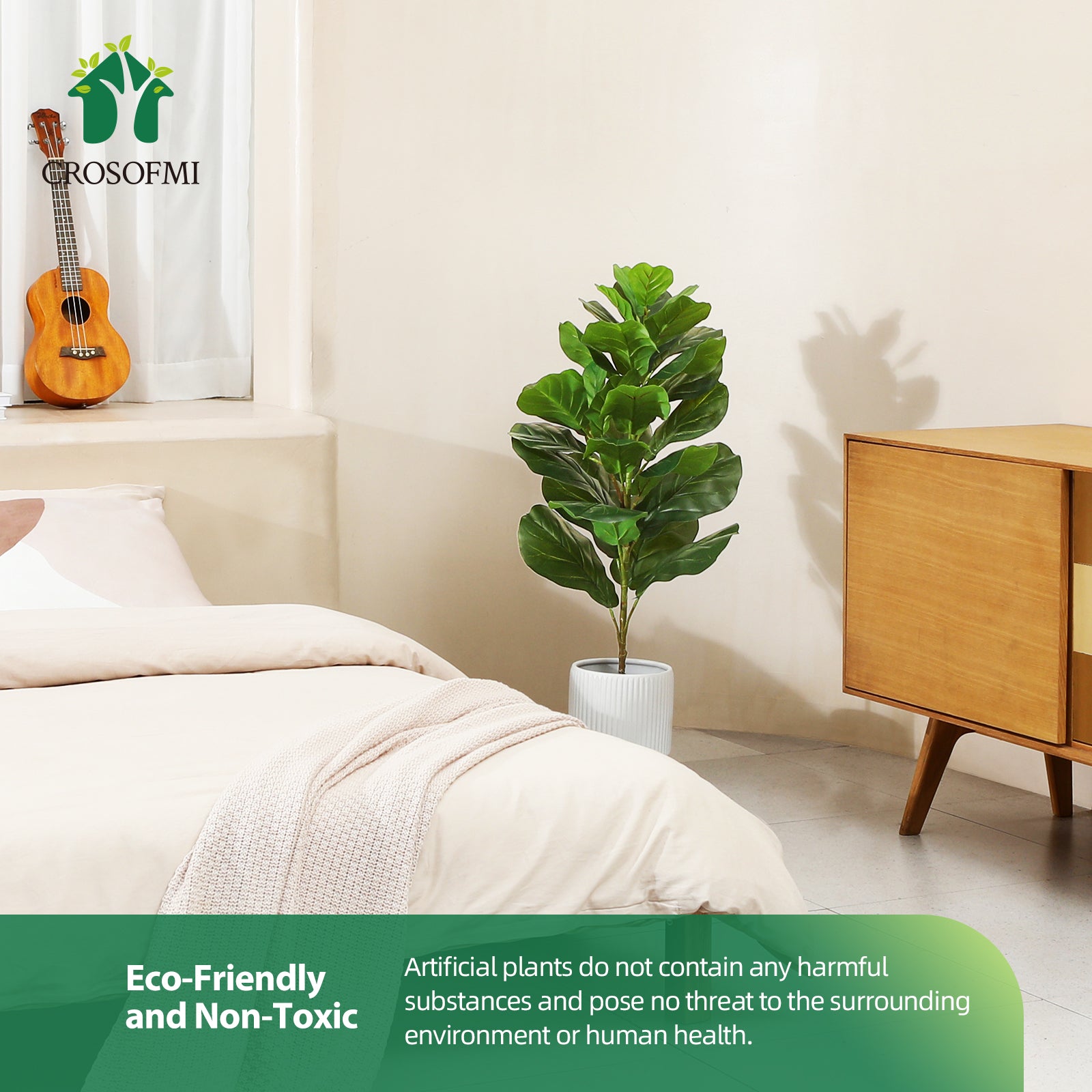 - ALL YEAR ROUND DECOR:Carefully crafted to mimic the appearance of a real-life fiddle leaf fig tree,looking as close to reality as possible, Waterproof,perfect for any room or office decor.All seasons are green.