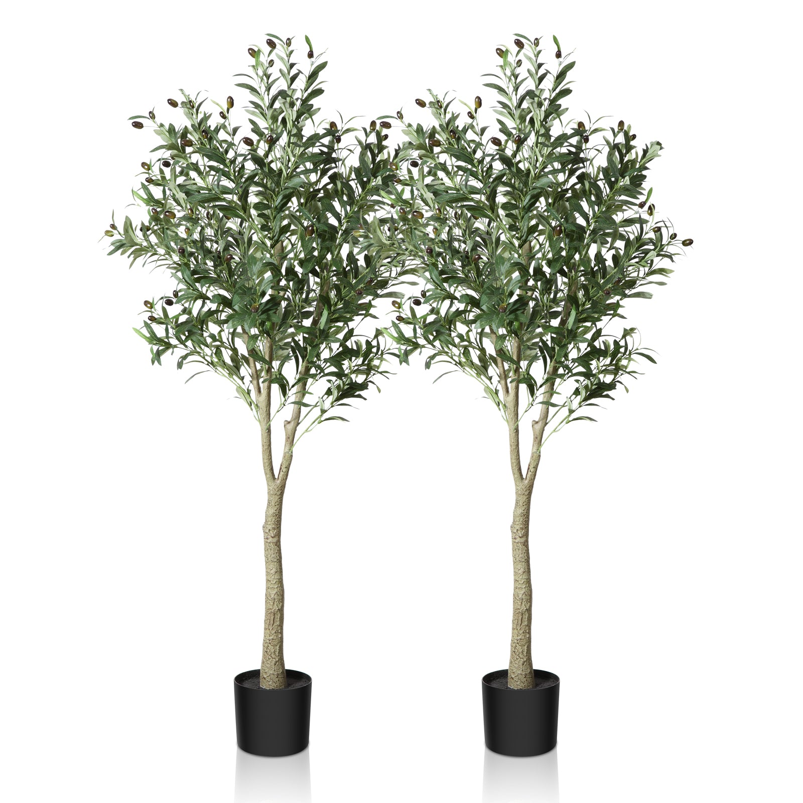 CROSOFMI Artificial Olive Tree Plant 5 Feet Fake Topiary Silk Tree, Perfect Faux Plants in Pot for Indoor Outdoor House Home Office Garden Modern Decoration Housewarming,2Pack