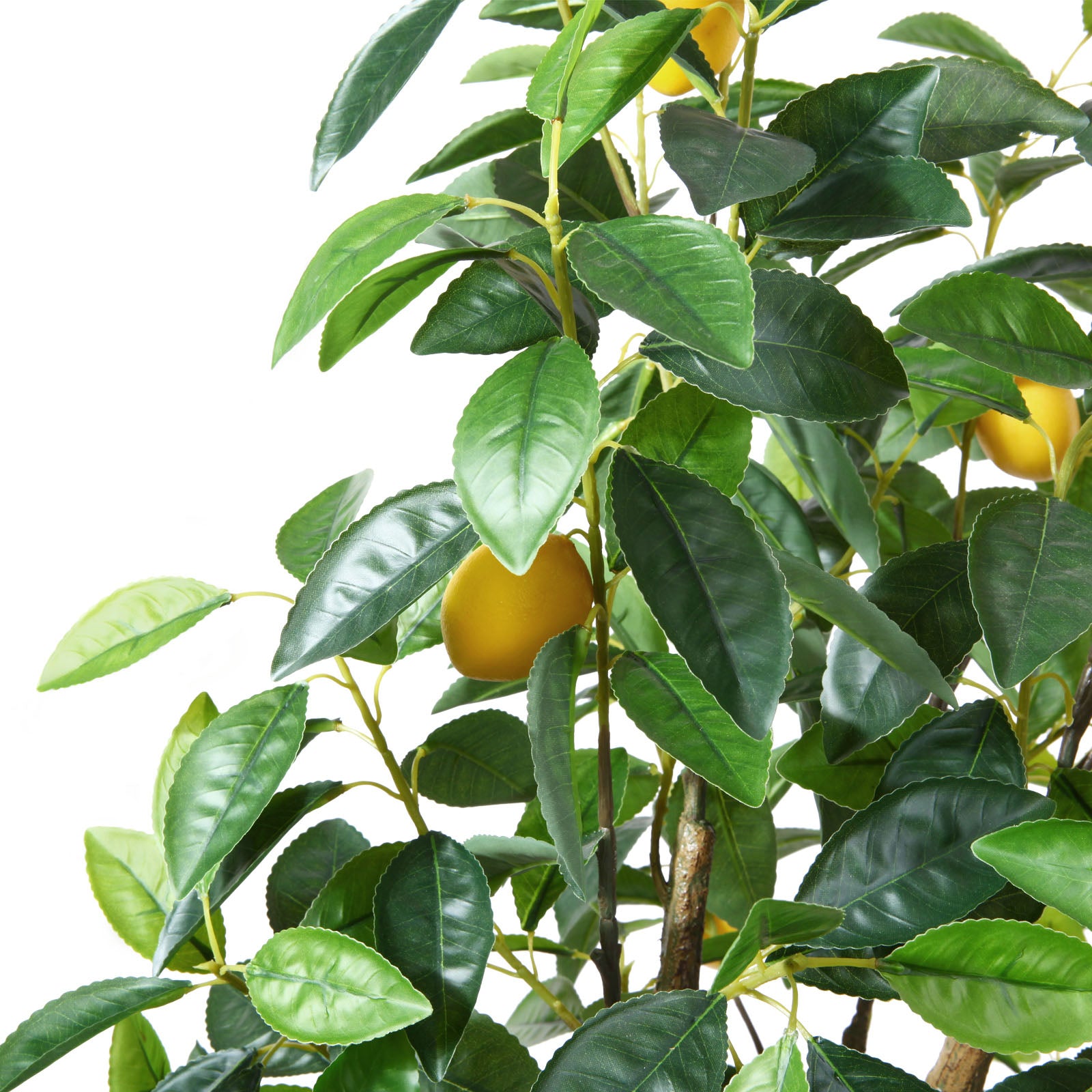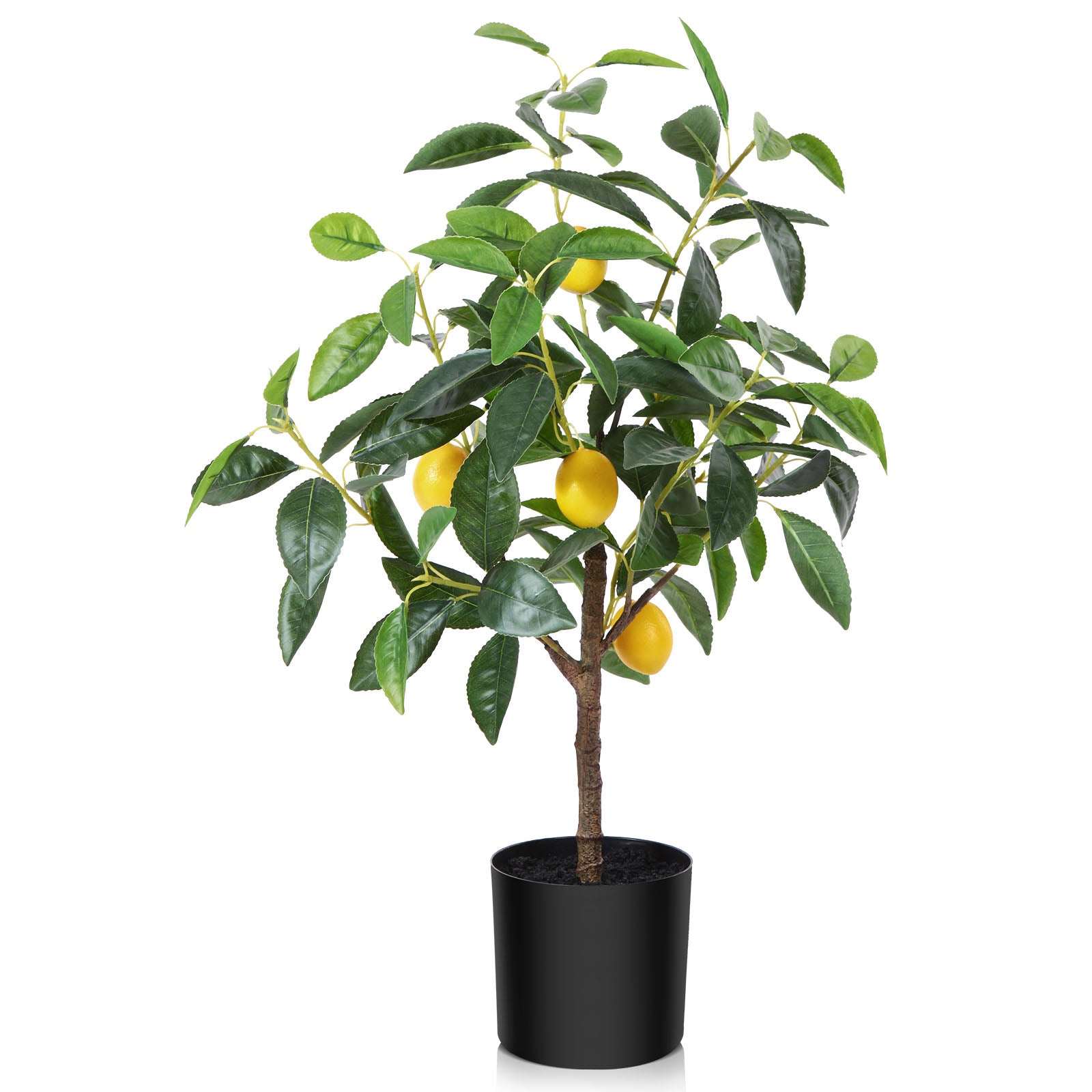 - Realistic design: The intricate details of the leaves and branches on this fake lemon tree are so realistic, you'll think it's the real thing. Plus, it comes with a sturdy plastic pot that blends well with any decor style.
