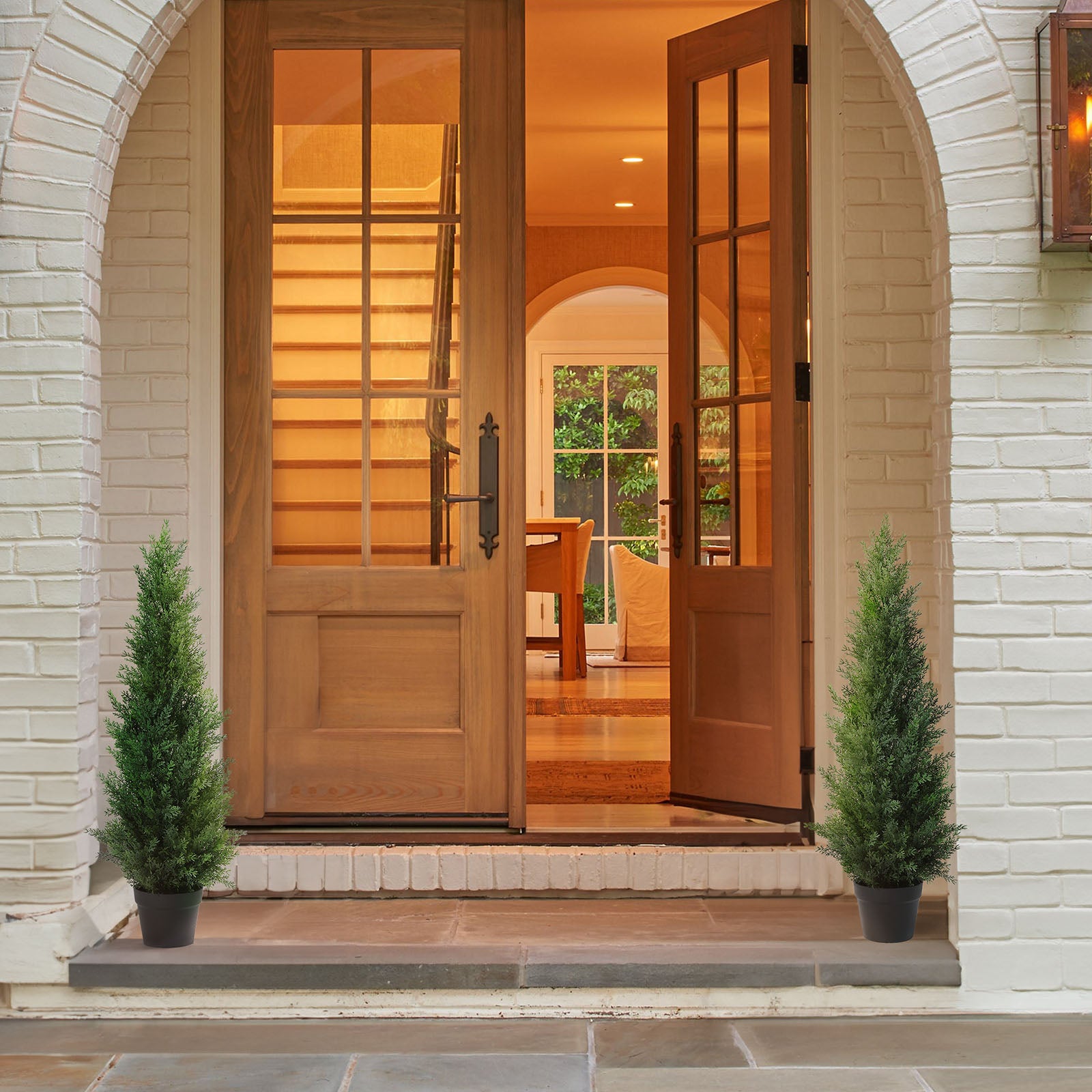 CROSOFMI Artificial Plants Outdoor 95 cm Fake Cedar Tree Large Faux Plants With Plastics Pots for Garden Front Porch Decoration (1 Pack)
