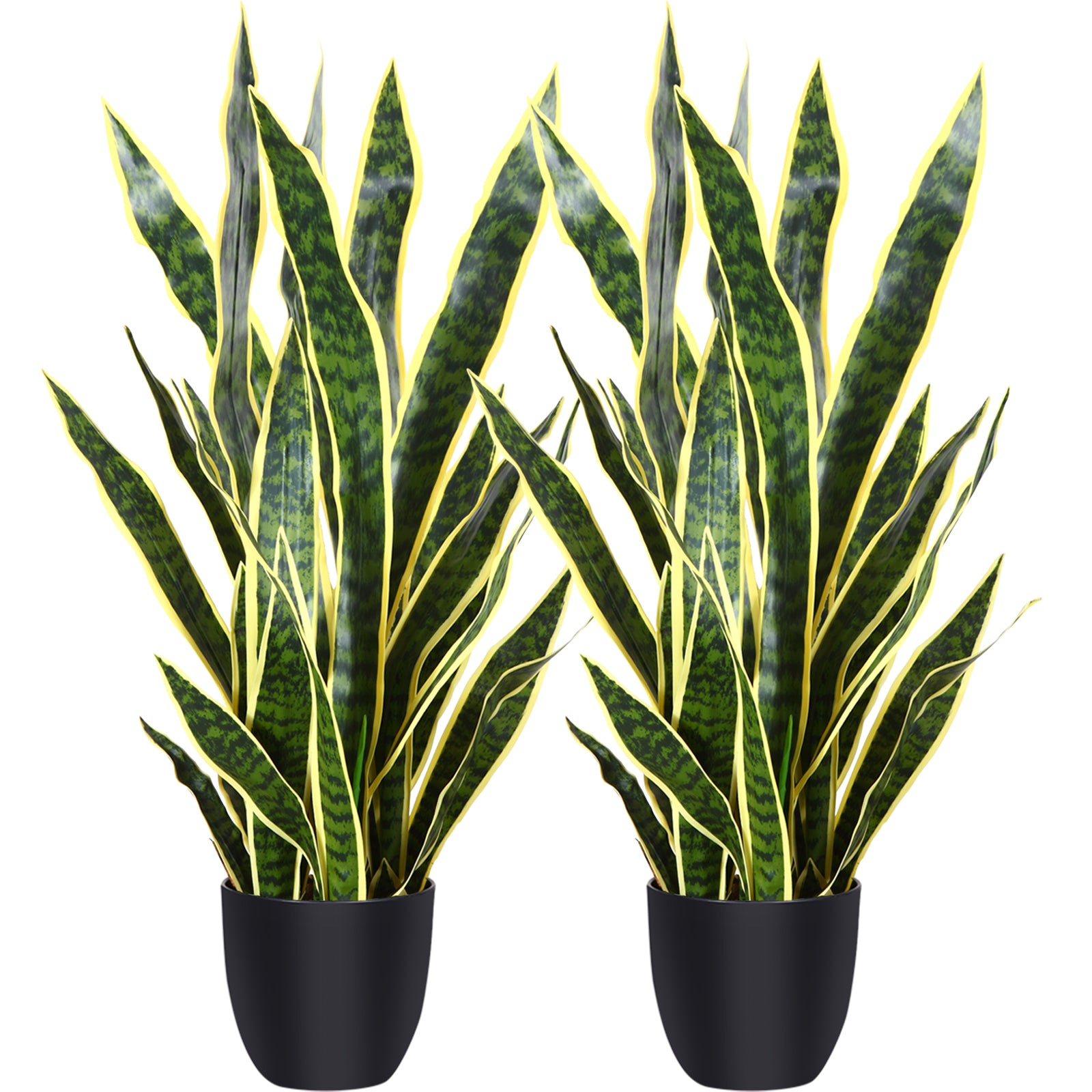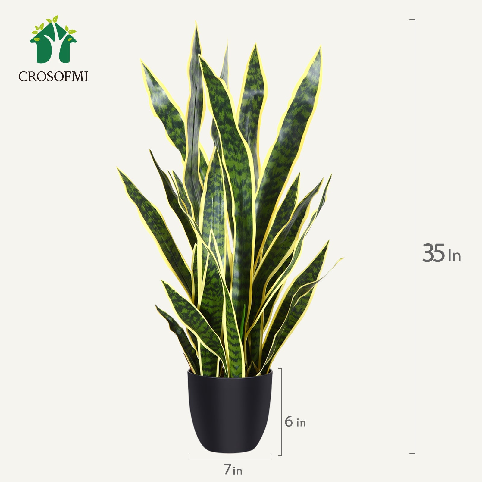 CROSOFMI Artificial Snake Plant 35 Inch Fake Sansevieria Tree with 32 Leaves Perfect Faux Mother in Law Plants in Pot for Indoor House Home Office Garden Modern Decoration Housewarming Gift,Yellow,2pcs