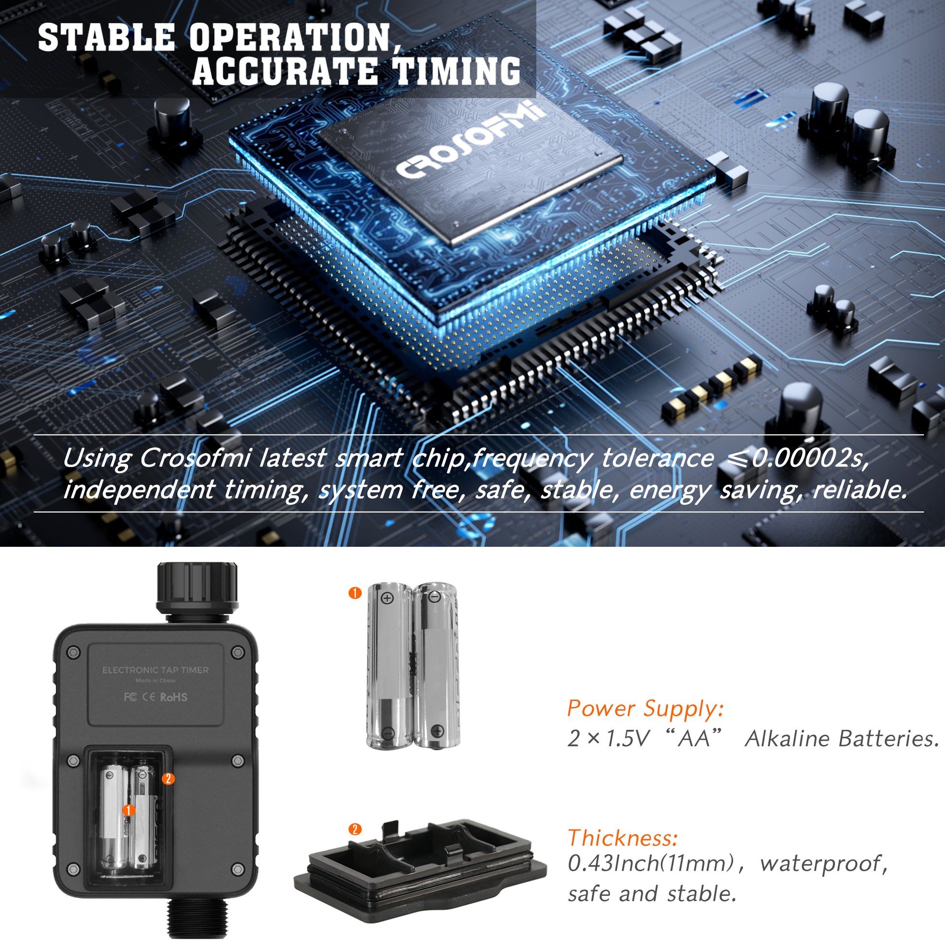 - 100% SATISFACTION:CROSOFMI sprinkler timer tries its best to improve product quality and peace of mind 100% satisfaction service.Customer's smile is our first goal,if you have any question,please feel free to contact us and we offer 24 hours friendly customer service