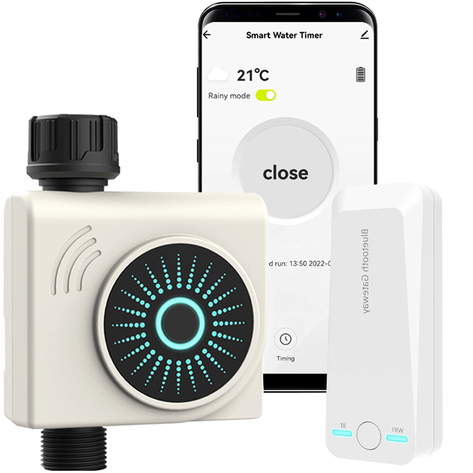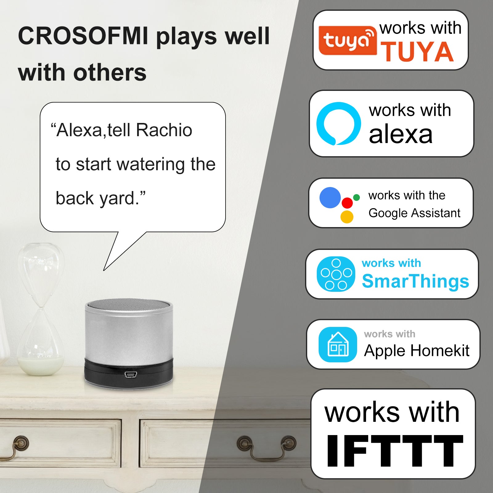 - BUILD YOUR SMART IRRIGATION SYSTEM – CROSOFMI wireless smart water timer for garden comes with a WIFI hub. Simply connect the WIFI hub to your family WIFI and pair with the water timer, then you can control the water hose timers via APP. The WIFI hub socket of our irrigation system emits strong signal which ensures immediate and stable connection, making your lawn/garden/yard/greenhouse watering task so much easier!